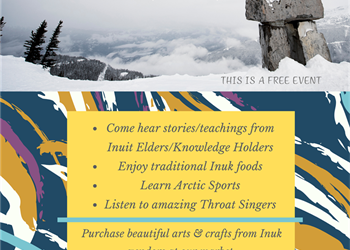 Nov 7 International Inuit Day Come spend the evening with us in celebration of International Inuit Day! Enjoy stories and teachings from Inuit Elders and Knowledge Holders, taste traditional Inuit foods, and try out some fun Arctic... Read more